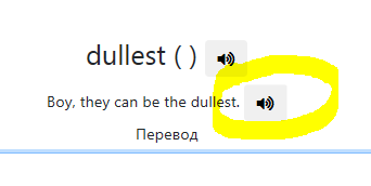 Если хотите прослушать предложение на английском с этим словом, нажимайте на другой динамик.